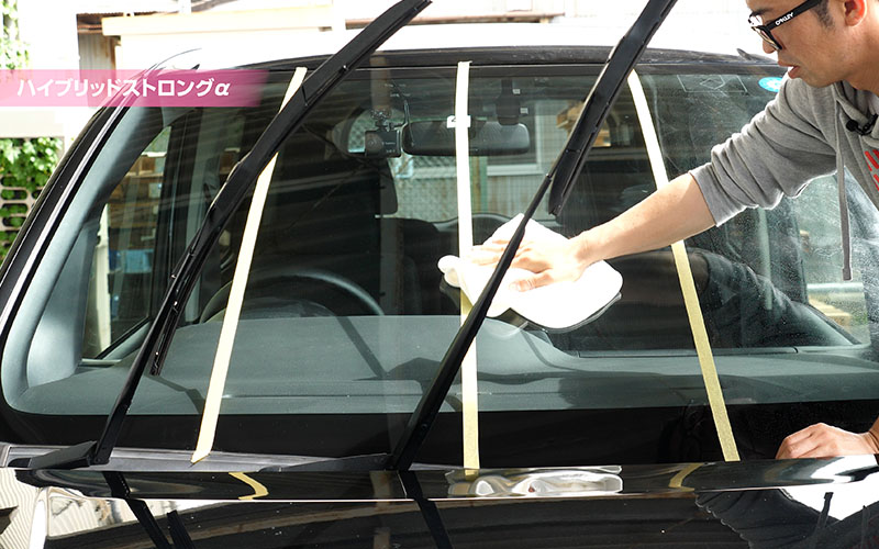 そうしたら続いて『ハイブリッドストロングα』と『ぬりぬりガラコDX』も施工していきます。