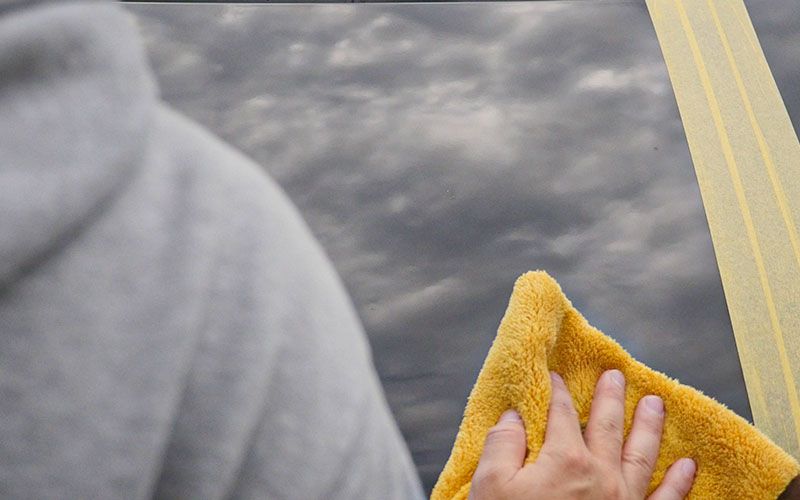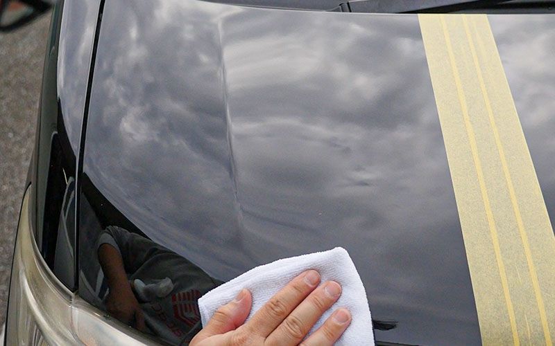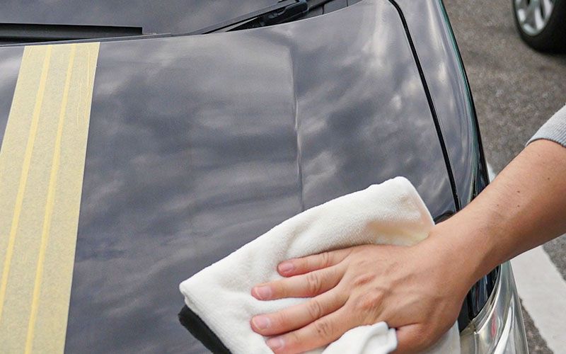 全体を満遍なく塗り広げたら、クロスの綺麗な面で拭き上げます。