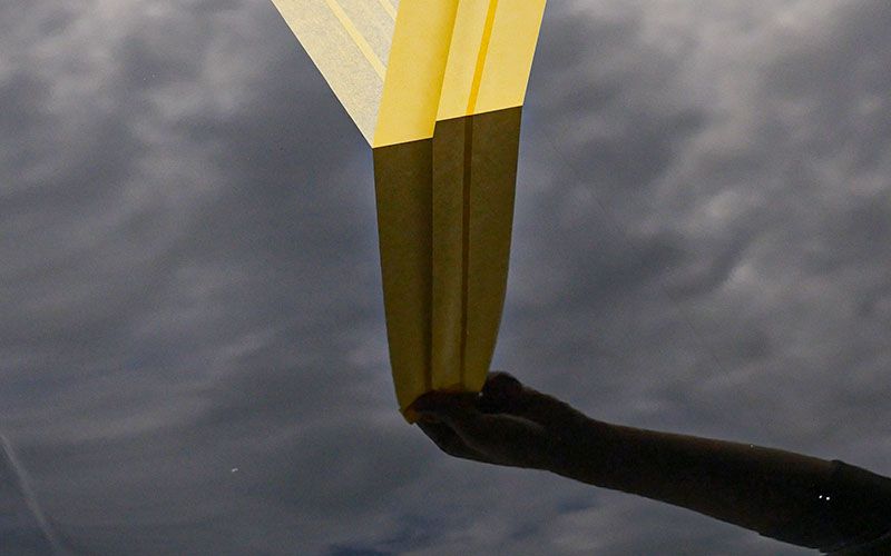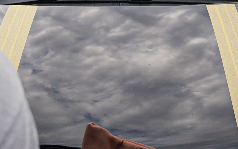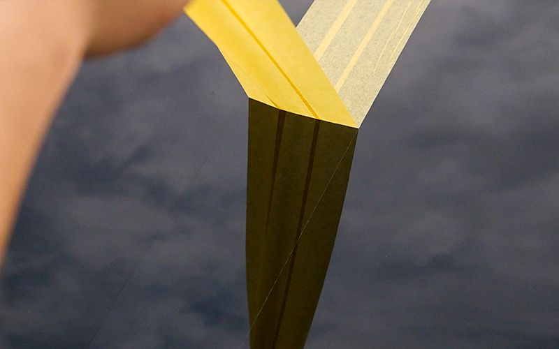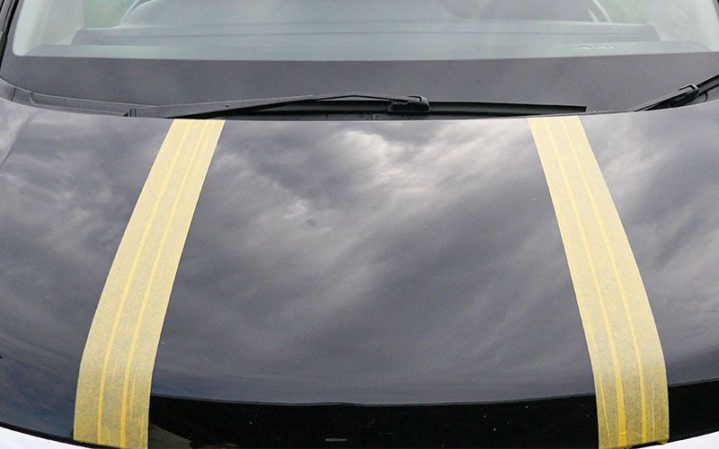 マスキングテープでボンネットを三等分にしました。
