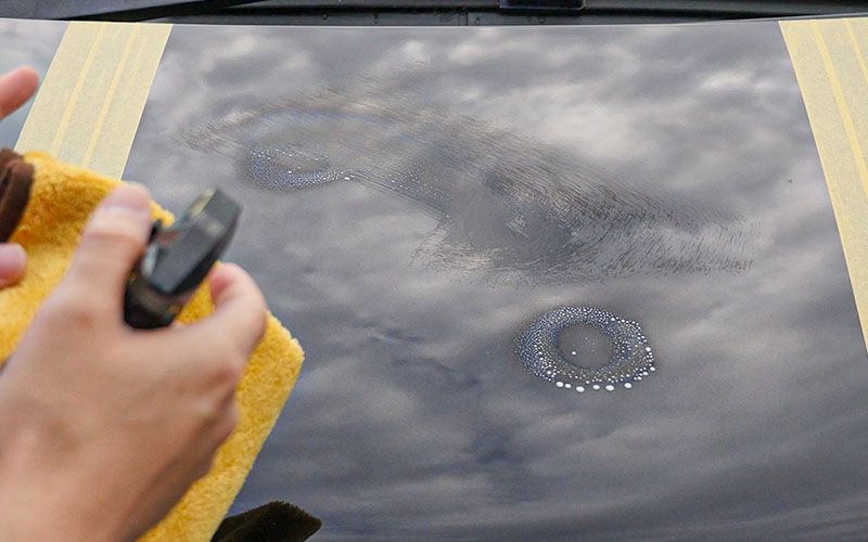 今回は1か月前に『CCウォーターゴールドプレミア』を施工したボンネットを使用していきます。