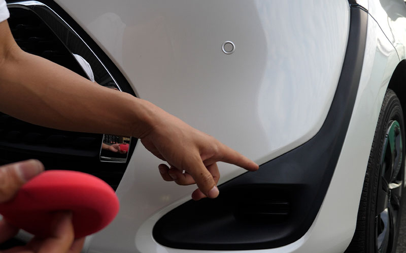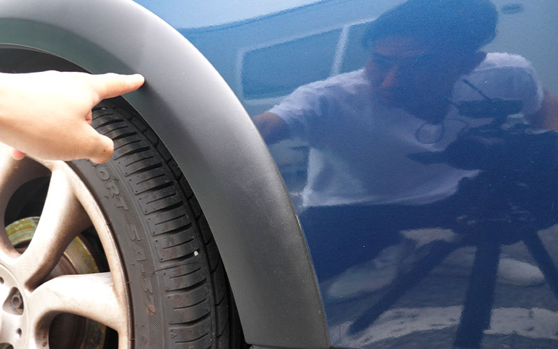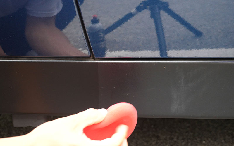 続いてサイドの未塗装樹脂部分を塗っていきます。白いのは汚れだと思いますが、汚れがある場合は汚れを落としてからやってあげてください。