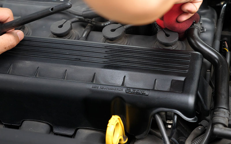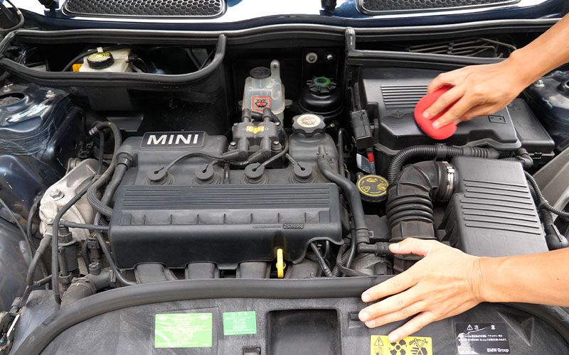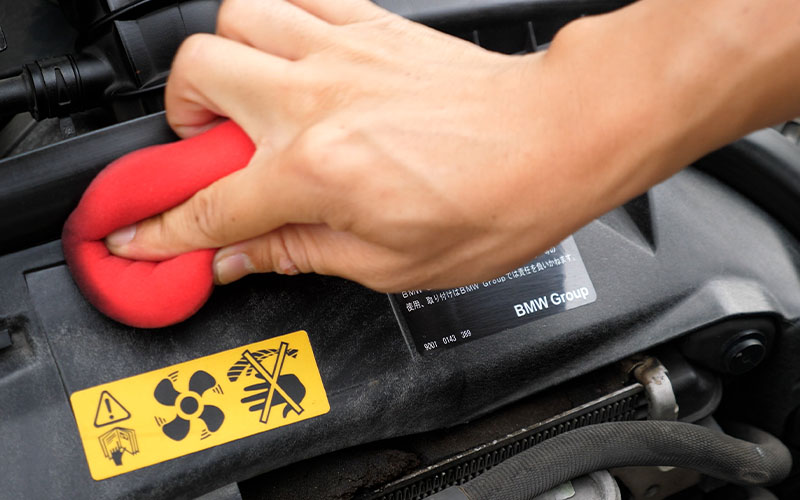 エンジンルーム内のパーツに施工
