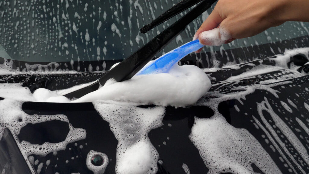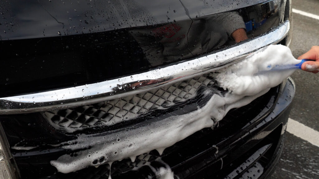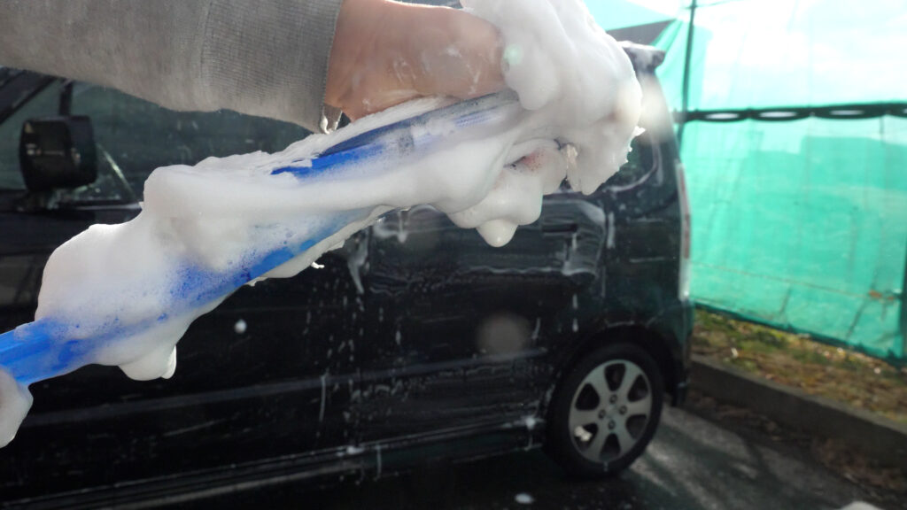 まずはカーシャンプーを作って、一旦 泡仕立てモップを使って洗ってみます。