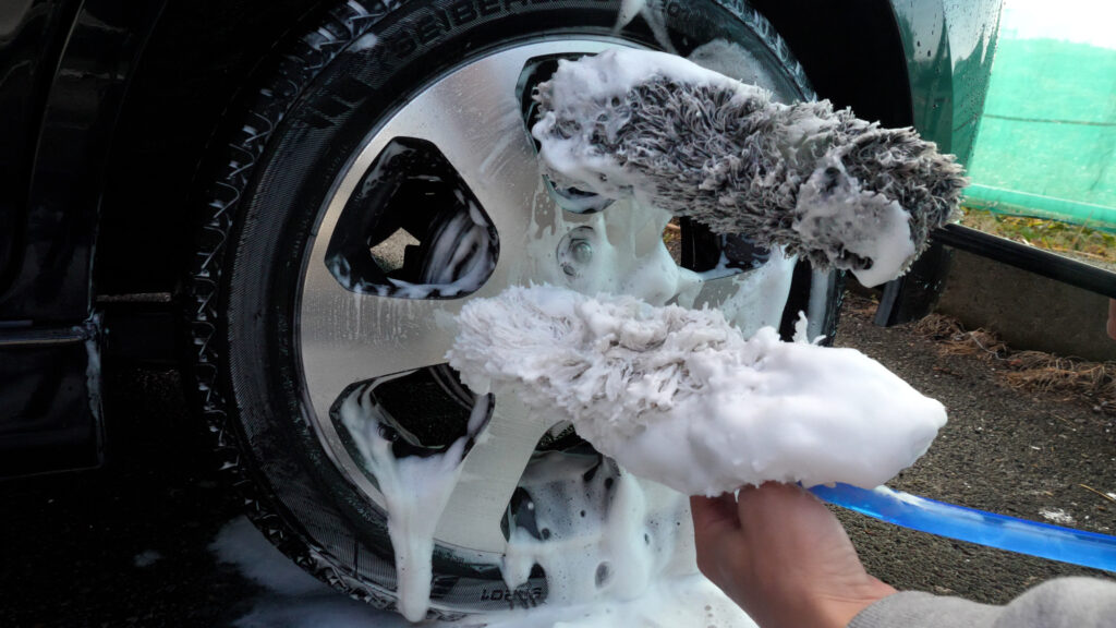 どちらかというと奥まで洗えるかどうかっていうところが重要になってくるので、そういうホイールブラシを使うんですよ。