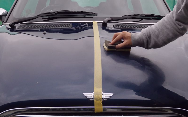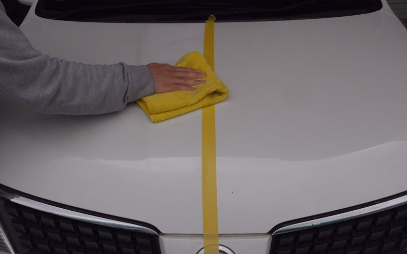 ③ 綿の布を使い、冷たく乾いた塗装面に軽く円を描くように塗布します。汚れや曇り、小キズを取り去る時は、力を加えながら作業してください。