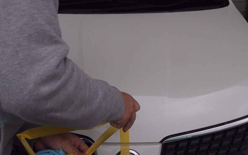 そうしたら汚れの落ち具合が分かりやすい白い車に施工していきます。