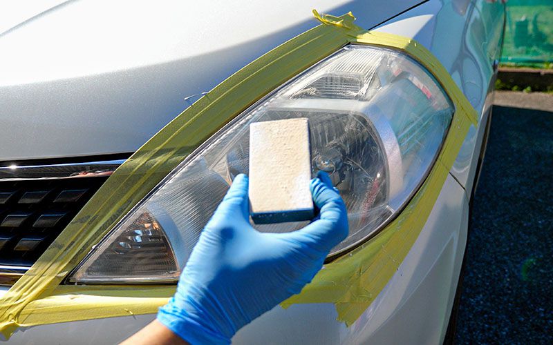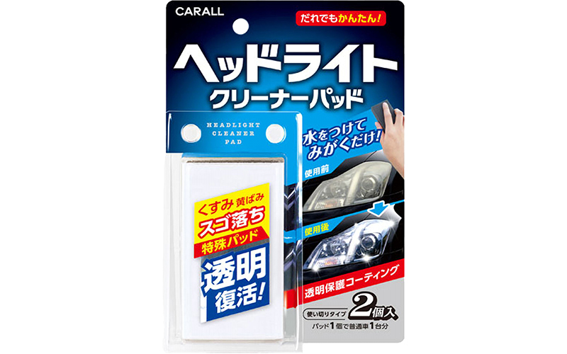 この商品はパッドに超微粒子研磨剤と保護成分が入っており、水を付けて軽く磨くだけで、ヘッドライトのくすみと黄ばみを除去できるそうです。