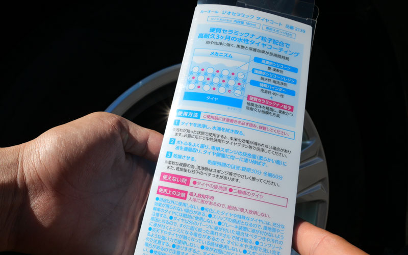 今回はこちらカーオールの新商品『ジオセラミックタイヤコート』というタイヤに使う艶出し剤を使ってみました。