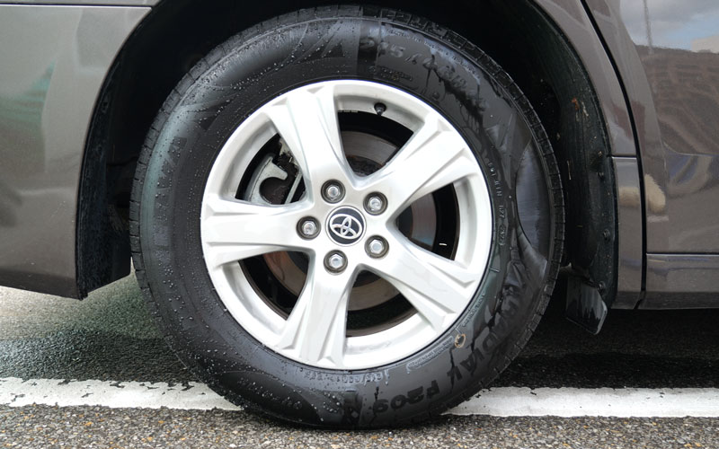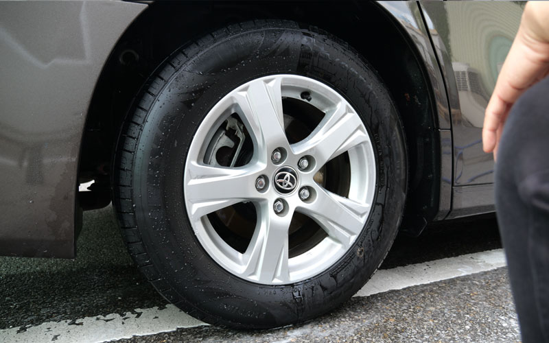 そうしたら1日経過しました水弾き 保護性能とか見ていこうと思います。これは前側のタイヤでジオセラミックタイヤコートだけを施工しているタイヤになります。