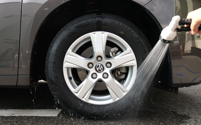 ジーオンのタイヤクリーナーを使って洗ってみます。