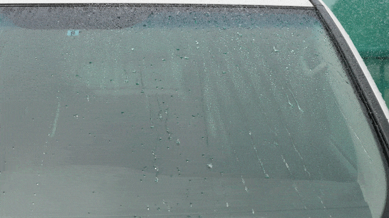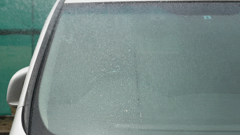 ガラスが湾曲しているので若干の差はあると思いますが、同じ撥水剤を施工していて、こんな風に差がでることはないので、撥水力の差だと僕は思います。