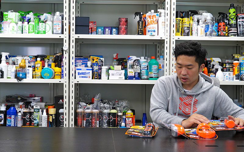 『ガラコQ』を施工していきます。液剤は白っぽく、角をしっかり塗ることができるので、良い感じです。