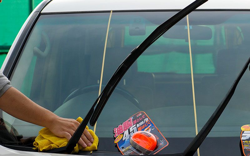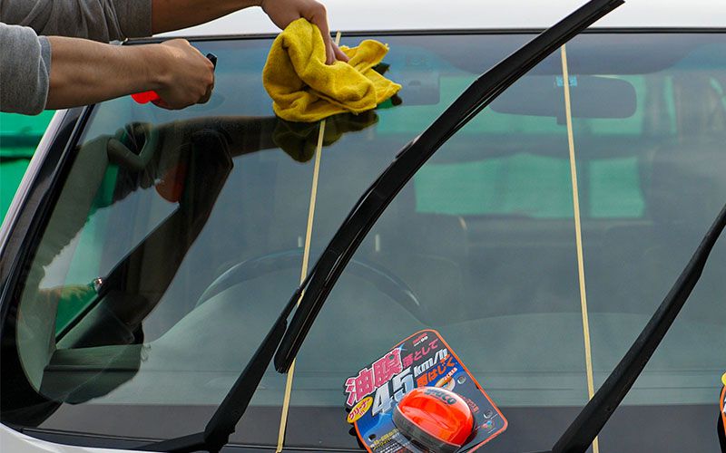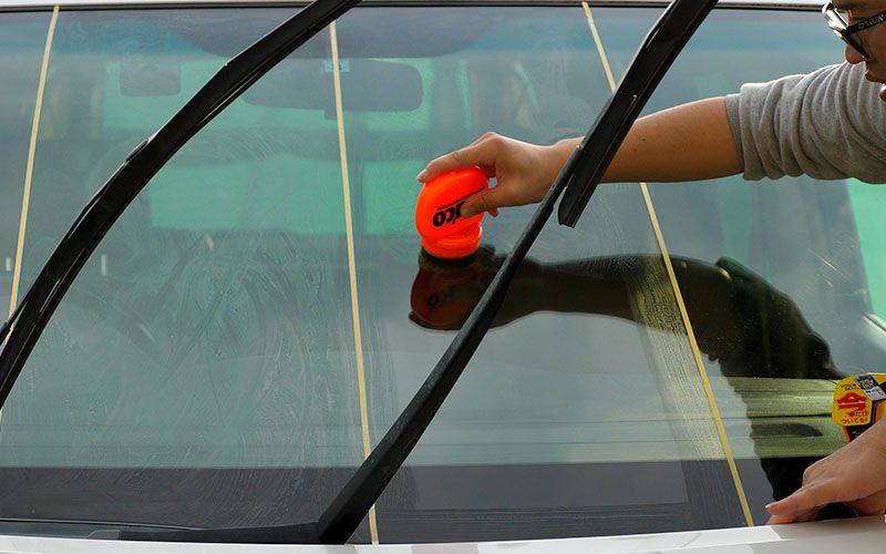 フロントガラスに『ぬりぬりガラコデカ丸』を施工する