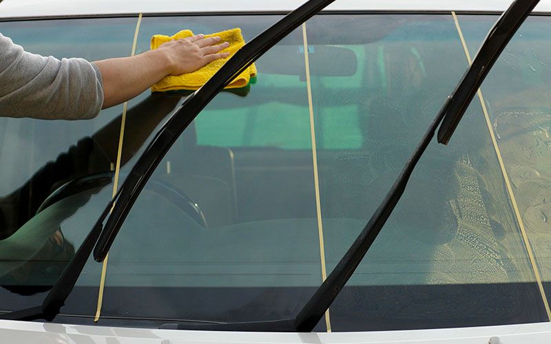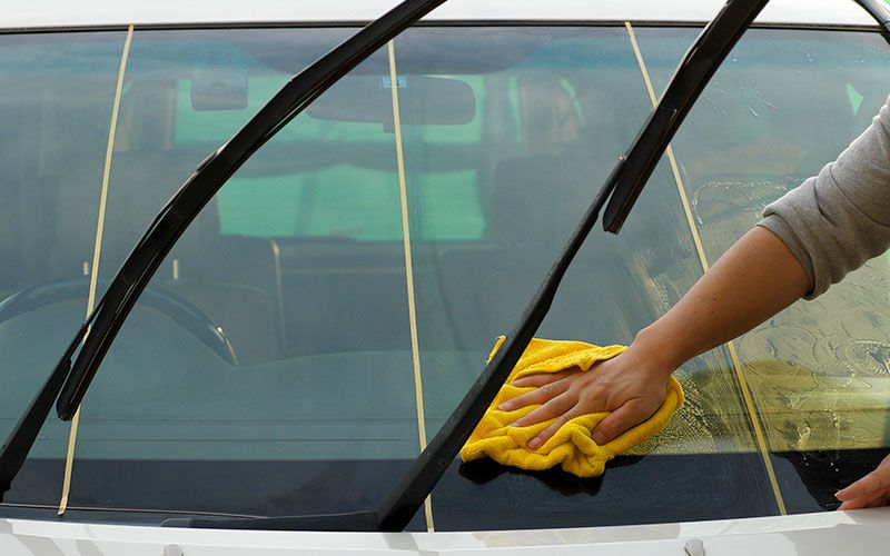 ④約5〜10分乾燥させ、キレイな乾いたタオルで拭き上げてください。ガラスとより強固に密着させるため、拭き上げ後12時間以上乾燥させてください。