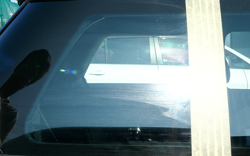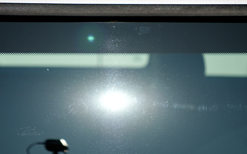 それで、未施工の部分とスマートビューで拭いた境目の部分に内側からテープを付けて印を付けていましたがクリア感はこちらの方がある感じするし、細かい汚れも落ちている感じがしました。