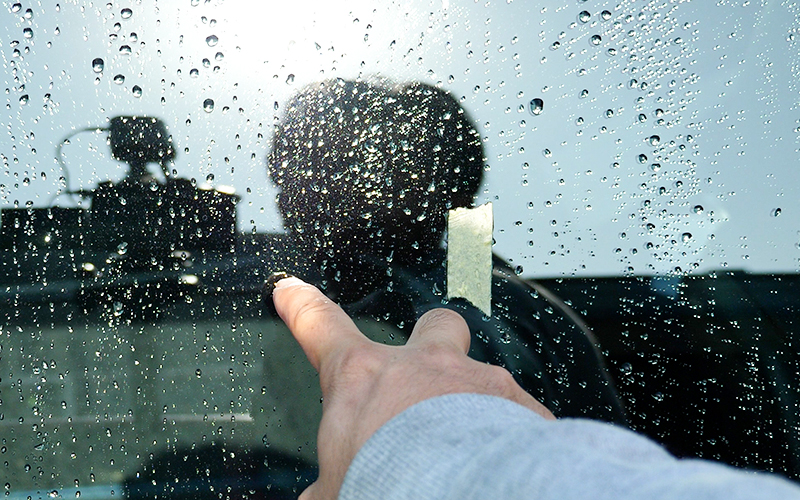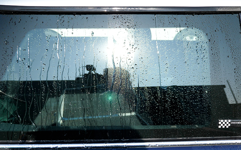 全体に水をかけた時に、ある程度垂れてガラスに水が付く時に境目が見えます。