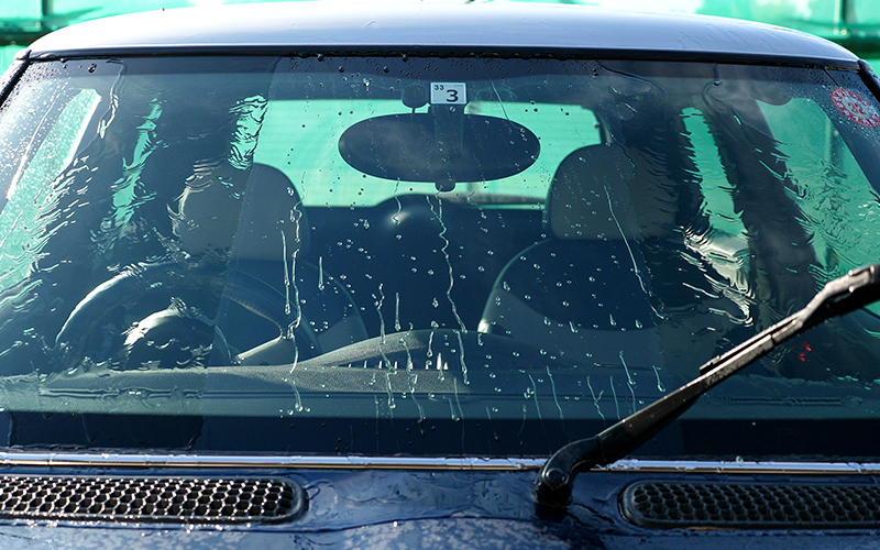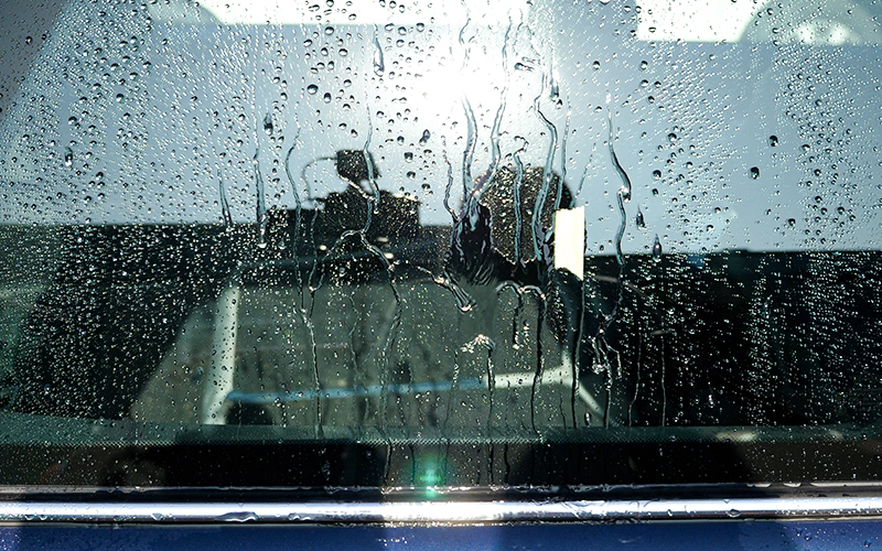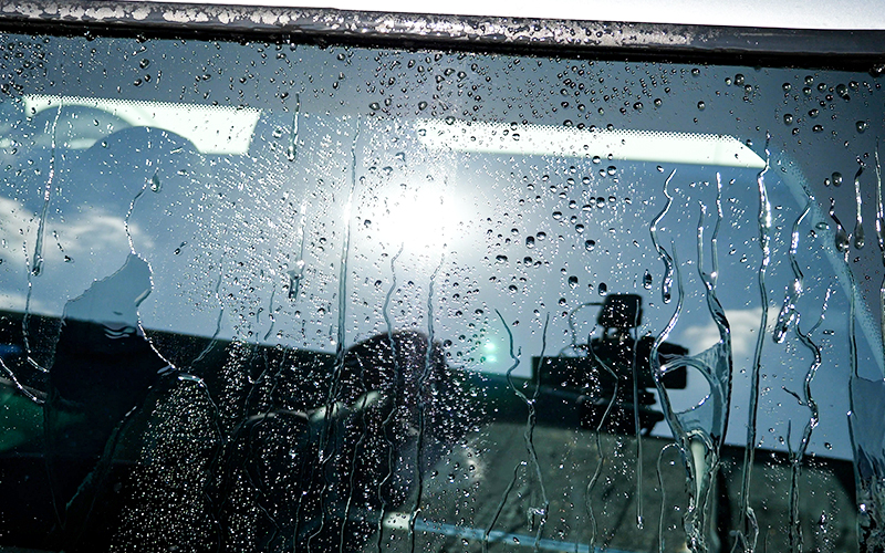 全体に水をかけた時に、ある程度垂れてガラスに水が付く時に境目が見えます。