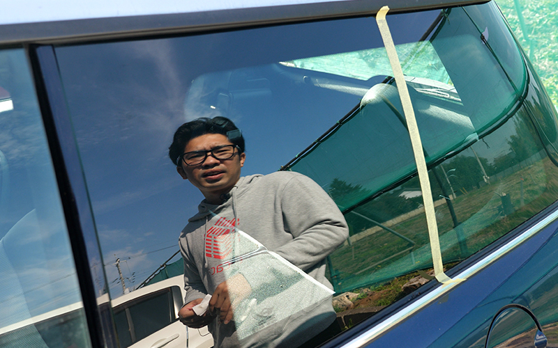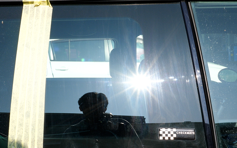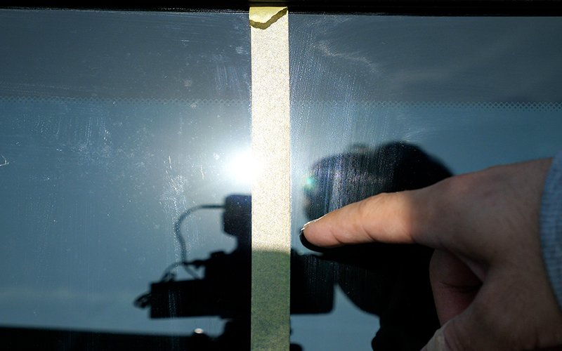 それで、未施工の部分とスマートビューで拭いた境目の部分に内側からテープを付けて印を付けていましたがクリア感はこちらの方がある感じするし、細かい汚れも落ちている感じがしました。