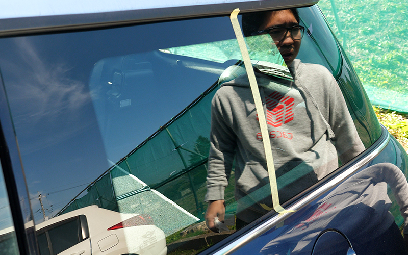 撥水力に関してはある程度わかったので、今度は日陰で施工をしてみて先程のギラつきが太陽の光と関係しているかどうかを見ていきます。