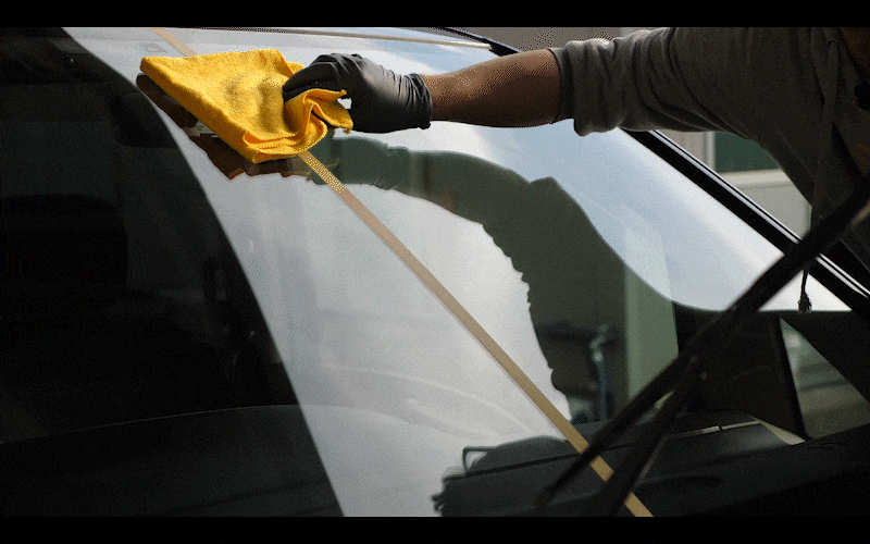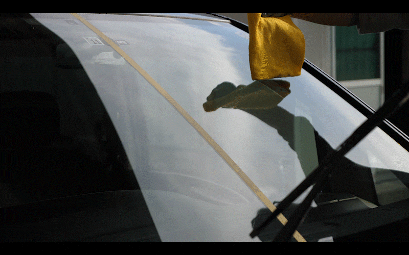 ⑤極細繊維クロスを水で濡らし固く絞ってからガラスを拭き、その後 乾拭きをし施工完了です♪