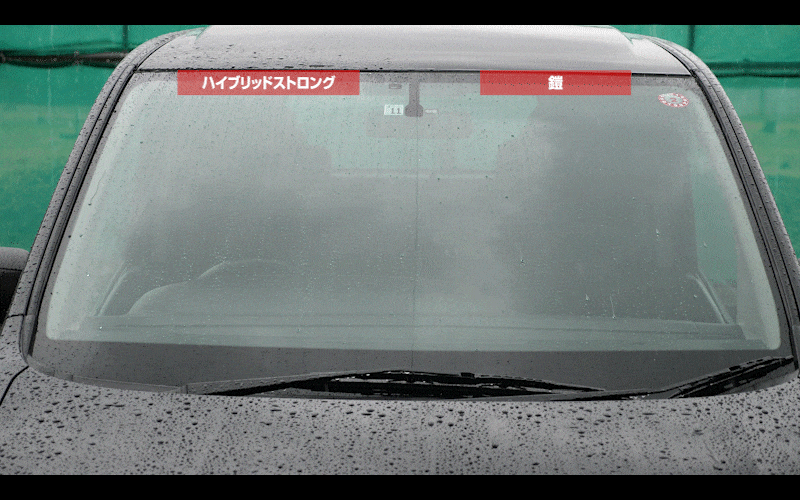 今回はcarpika.net(カーピカネット)の『鎧』とクリンビュー『ハイブリッドストロング』をフロントガラスの半面ずつ施工して、比較を行いました。