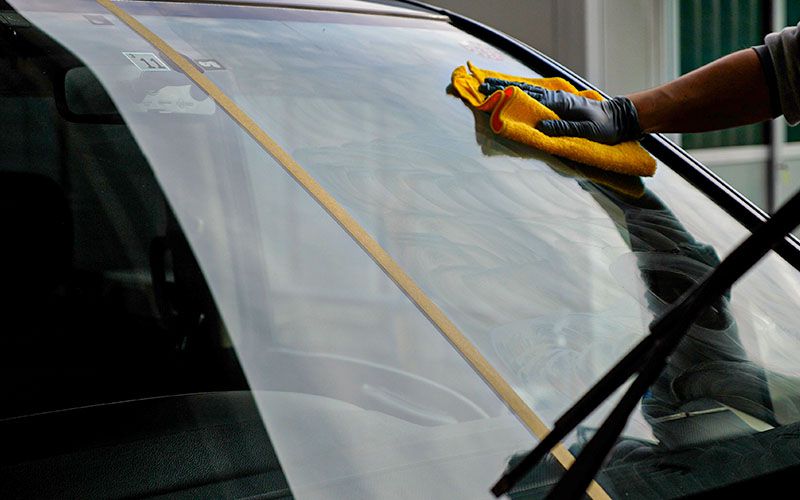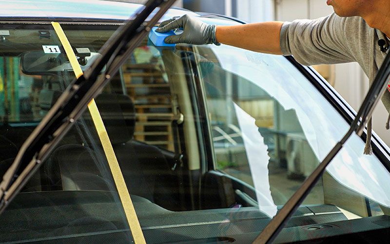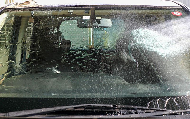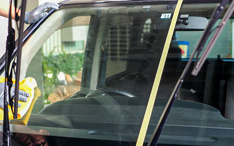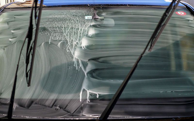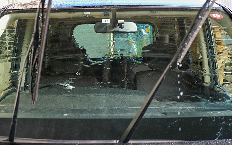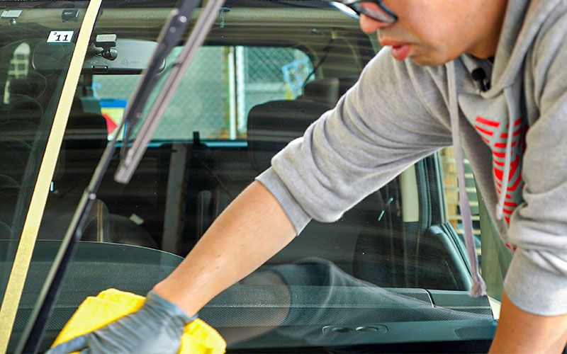 ①シャンプー洗車もしくは水で、ガラス面に固形物がない状態にします。
