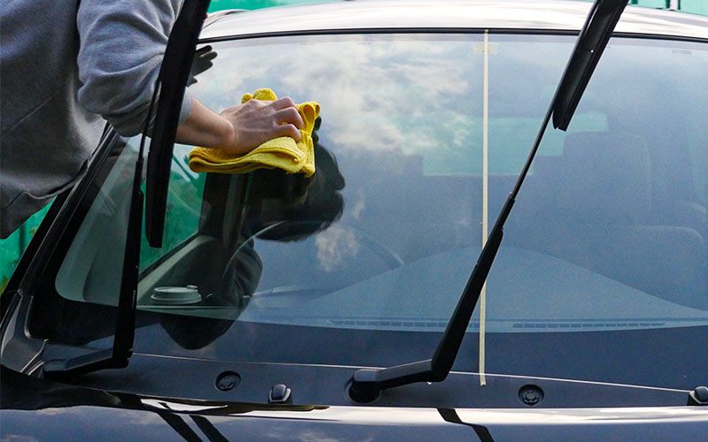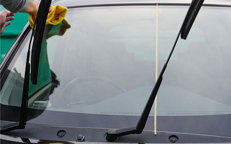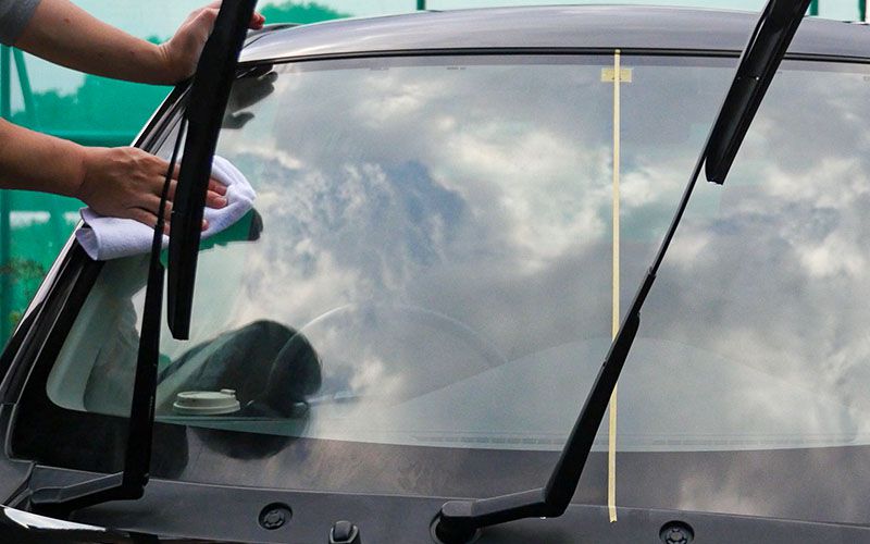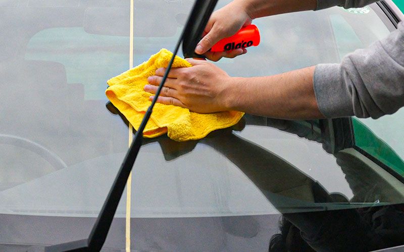 ①ガラス面に汚れが付着していないことを確認する。事前に油膜を除去し、綺麗に拭き上げる。