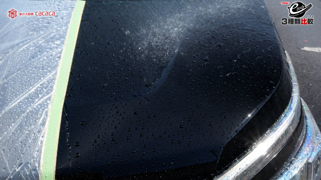 水滴のこの立ちっていうのかなふくらみ方がやっぱり撥水と比べて全然違う。