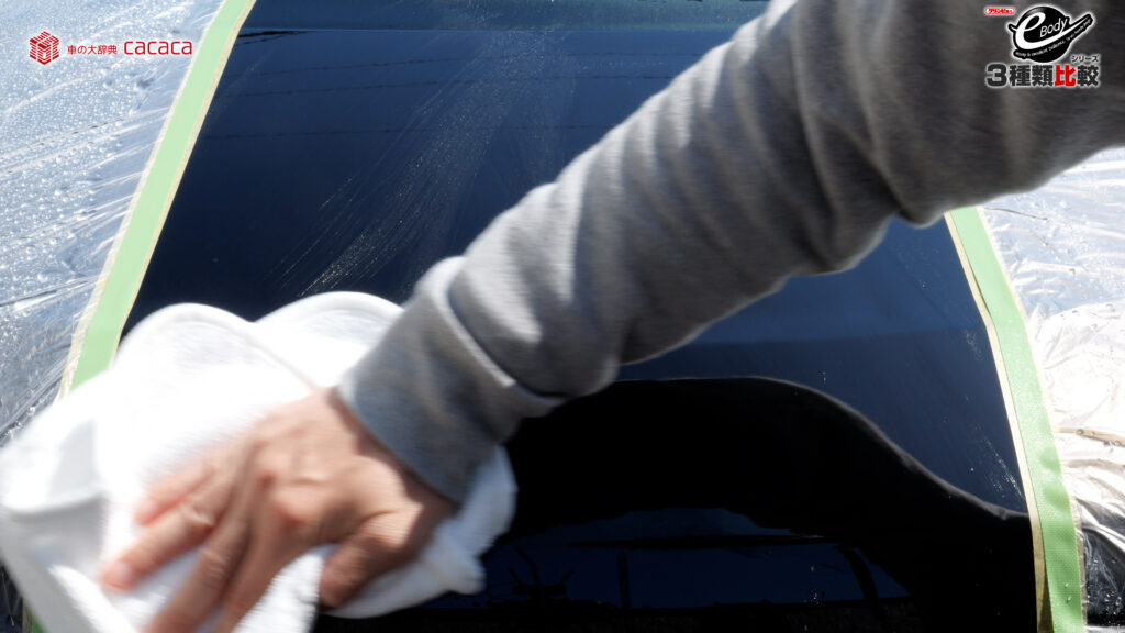 似たような商品でいうと、この間家系洗車さんとコラボした時に使ったアクアだったり、GYEONの『ウェットコート』、あの辺と似ているんじゃないのかなと思っています。