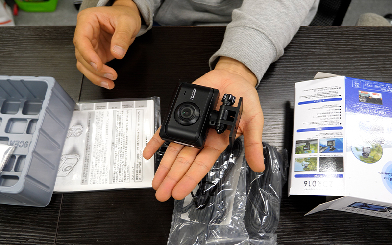 カメラも全開のドラレコとはかなり見た目が違っていて、『ZDR016』はフロントとリアに付けるカメラが2つ付いていたんですがどちらも室内に入れる形になります。