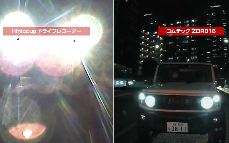 夜に走行した時の「ZDR016」と「Amazon売れ筋ランキング ドラレコ部門1位(※2021年7月時点)のドラレコ」との違い
