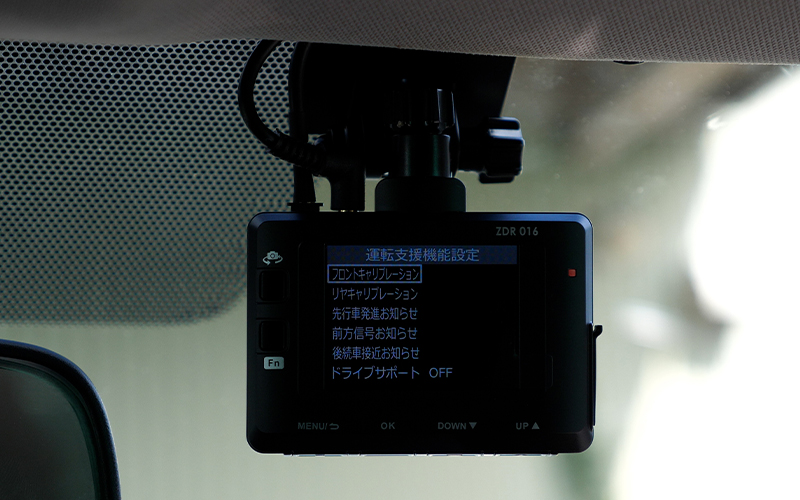 このドライブレコーダーに付いている以上の機能の中で一部反応したものが「先行車発進お知らせ機能」と「前方信号お知らせ機能」、「ドライブサポート機能」でした。