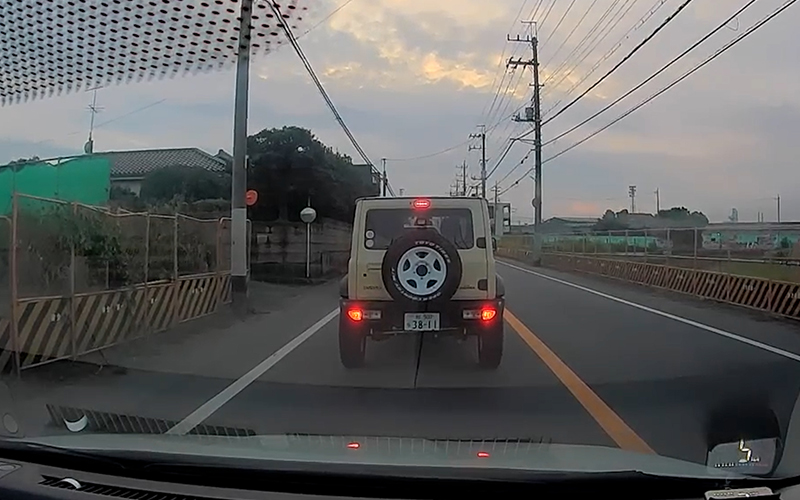 ちなみに、左側のドライブレコーダーに関してはナンバー灯の明るさによってはナンバーを認識できる場合もありましたが、前を走行しているジムニー シエラのナンバー灯の明るさではナンバーを正しく確認することができませんでした。