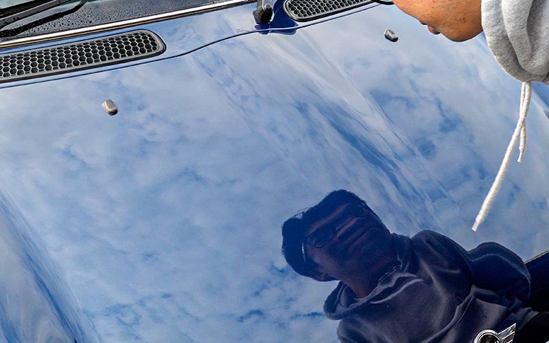 まずはボンネット部分。こういったコーティング剤の艶はカメラに映りづらいことも多いのですが、今回はマスキングテープ部分を含めて、違いが肉眼でもわかりませんでした。