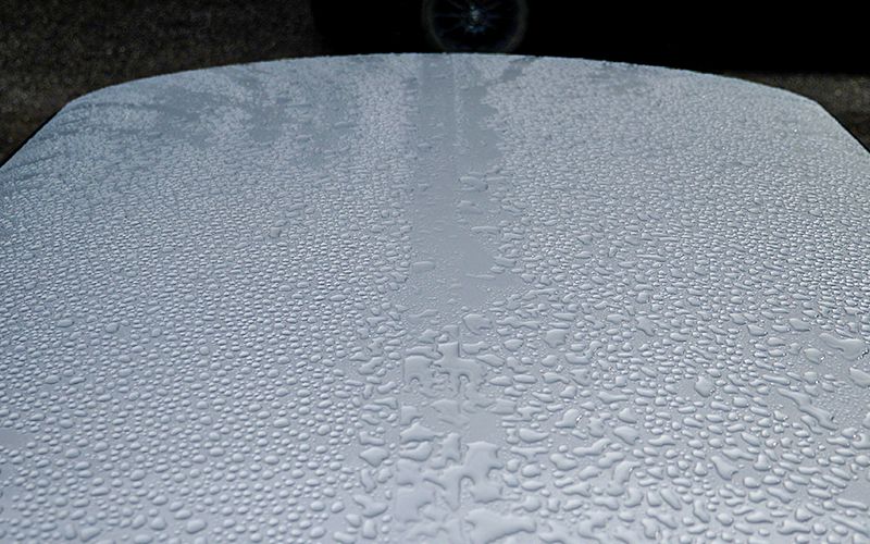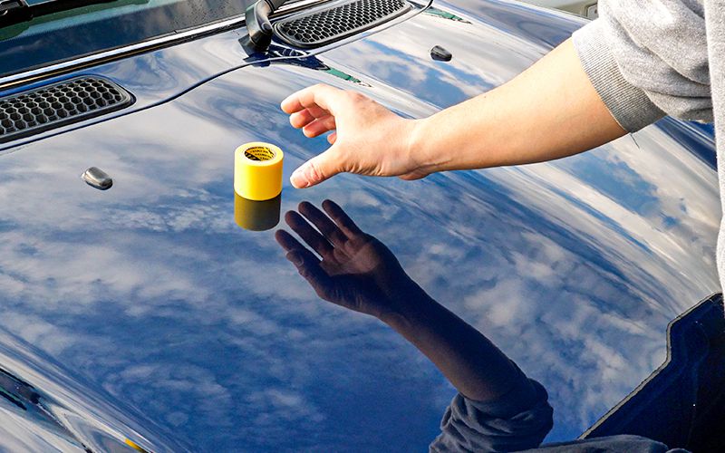 今回もこれまで同様にマスキングテープをボンネットに乗せて滑りを確認してみました。ボンネット形状も影響すると思いますが、『D-COAT』の場合はマスキングテープが動きませんでした。手で触っても、特別ツルツル感が増している感じもない印象です。