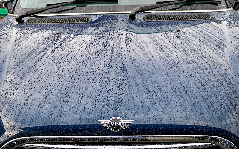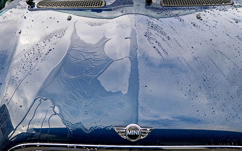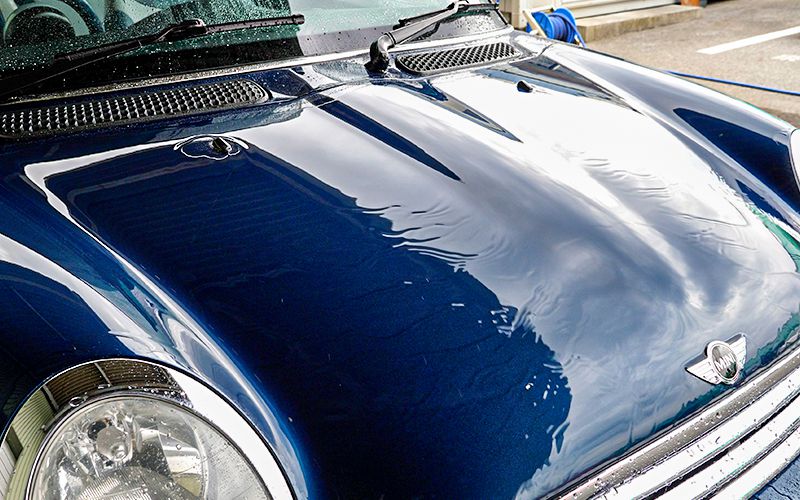 今回はMINIに施工していこうと思います。現状はボディを軽く磨いてあり、全く水を弾かない状態にしてあります。