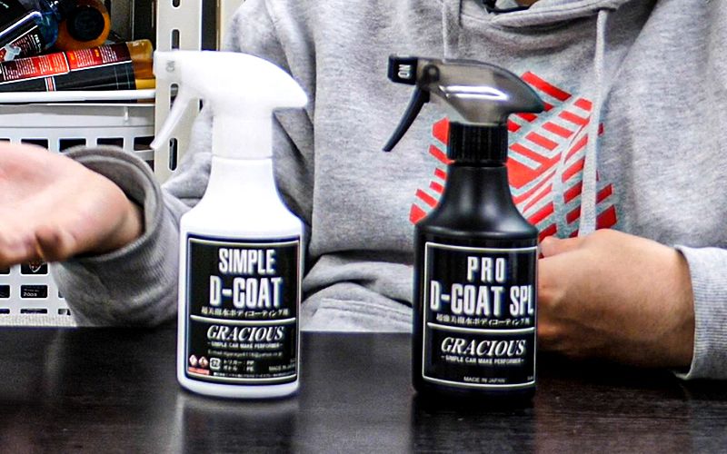 といった感じで、今回はグレイシャスのシンプル版『D-COAT』とプロ版『D-COAT SPL』というコーティング剤を使い比べてみました。