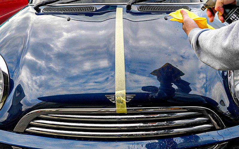 先ほどボンネットに施工した後なのでクロスが若干水を吸っています。こういった場合はしっかりクロスを絞りながら施工するのが大切です。