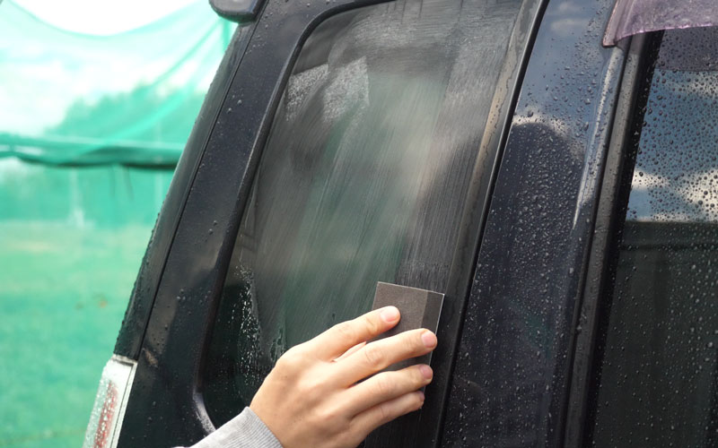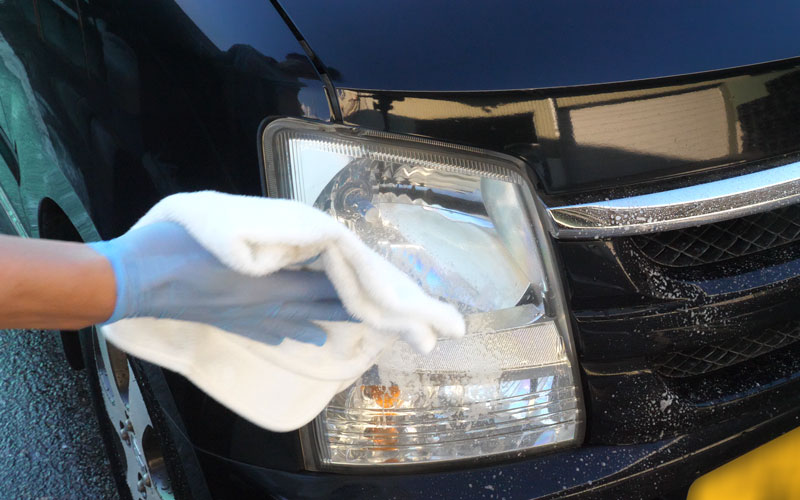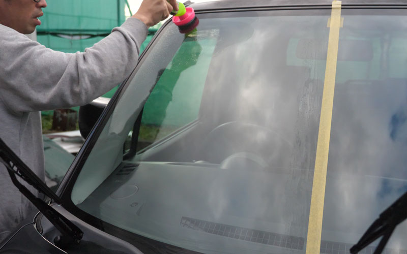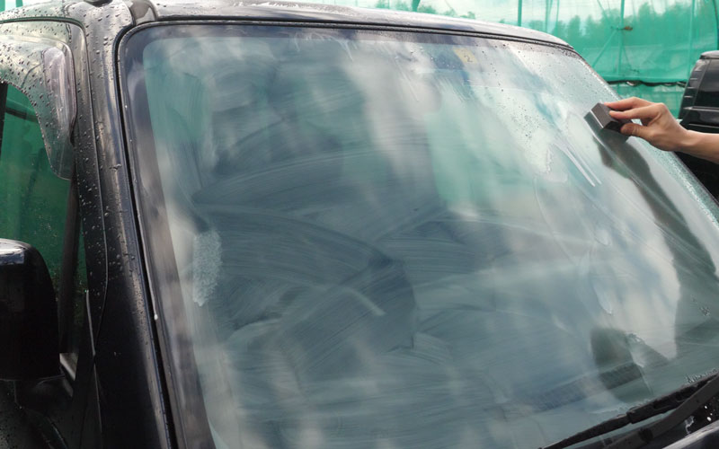 フロントガラスも同じです。力はいらないです。軽く擦るだけで十分です。