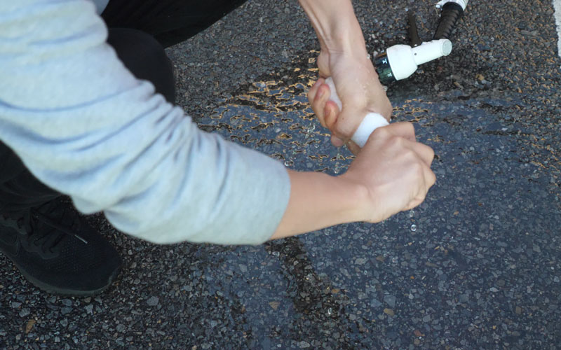 注意点としては、新品はフェルト面に液剤が染み込んでいないので塗ってても塗れていないことがあるので、最初は液剤を出してフェルトに染み込ませてから施工すると上手くいきます。