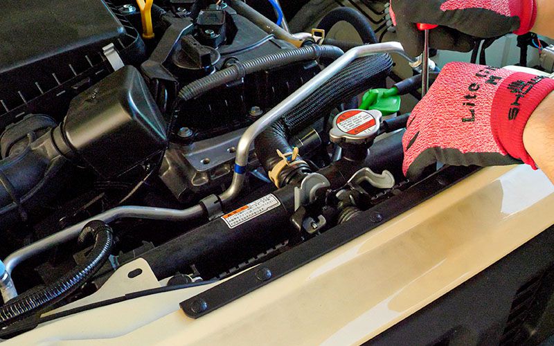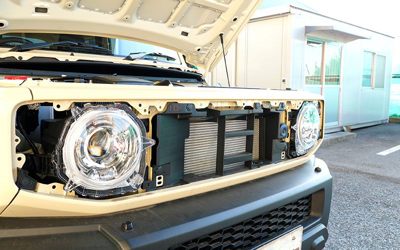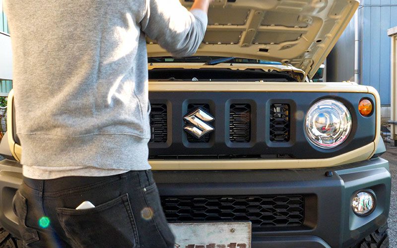 ジムニーシエラは簡単にボンネットが開けられるから作業が楽で良いです。