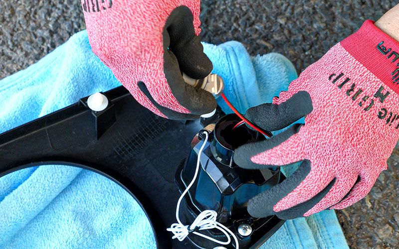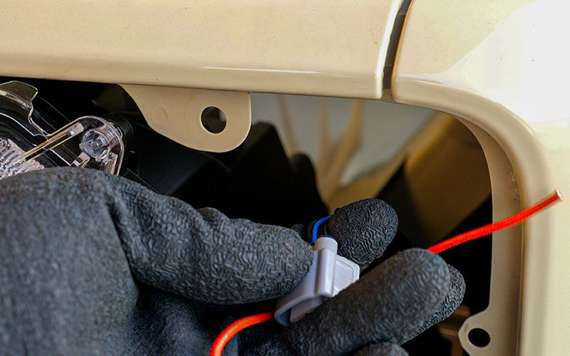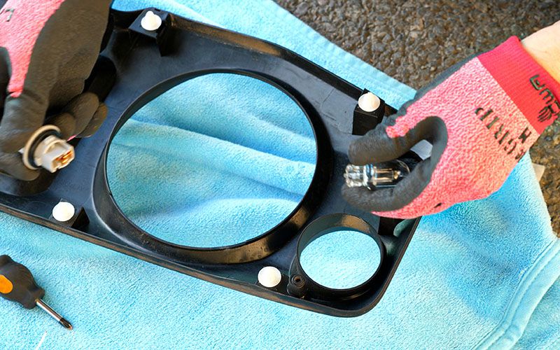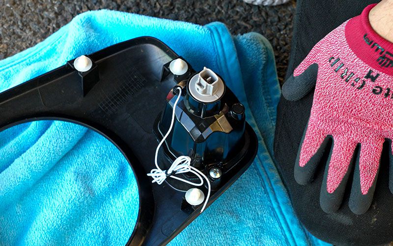 クリアレンズの配線を中に押し込んだら先ほどのソケットを差し込み、蓋をします。これで防水対策もバッチリですね。