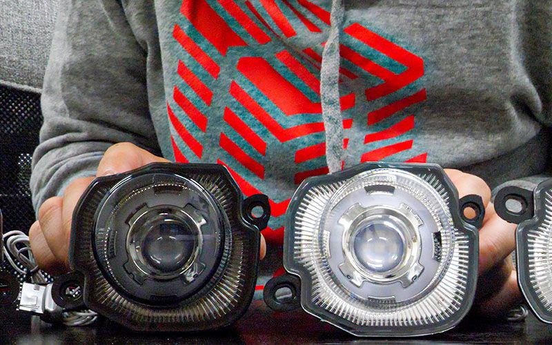 今回購入したウインカーレンズです。今風の見た目で、真ん中のプロジェクターっぽいところにチップが9枚入っています。