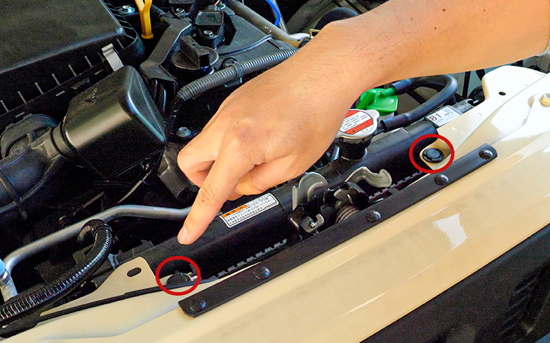 グリルを取り外す必要があるので、まずはボンネットを開けます。