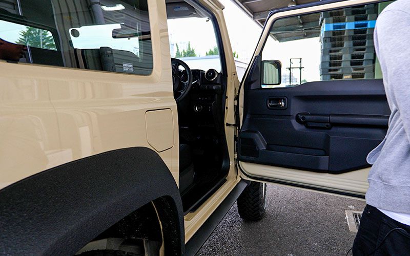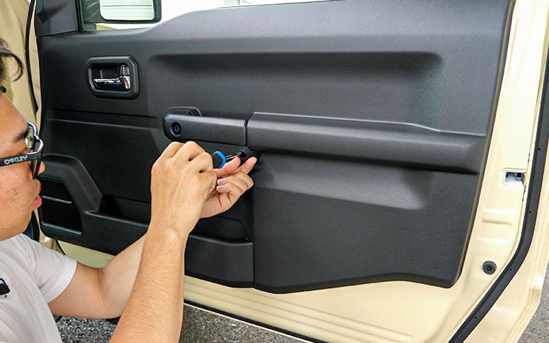 [displayPost url=http://test1.cacaca.jp/product/69896/]ジムニーシエラのドアパネルはネジを外したら後はクリップなので取り外しが簡単にできるところが良いですね。