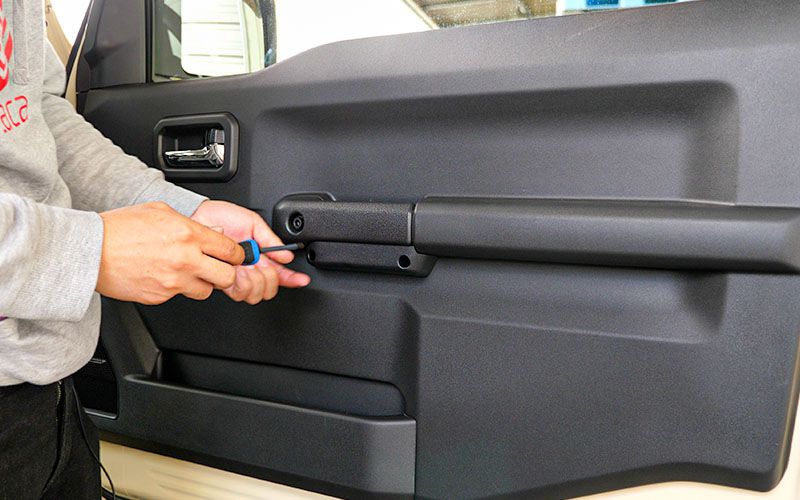 ドアパネルの前に以前取り付けた星光産業のドアポケットを取り外します。