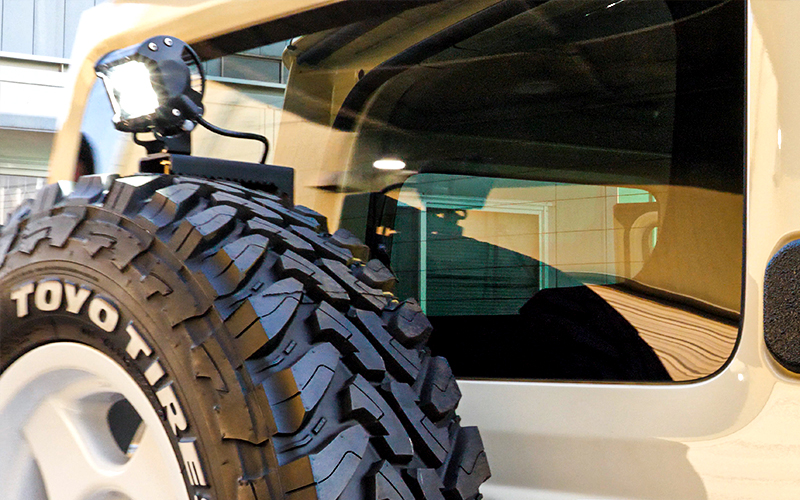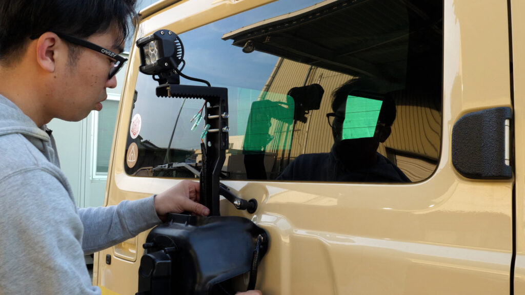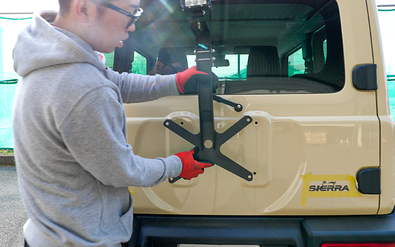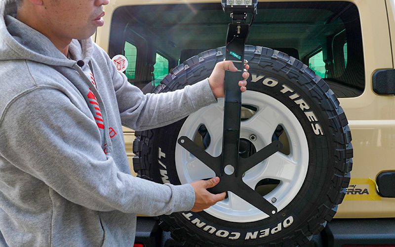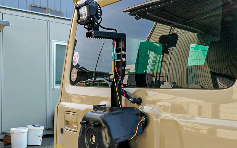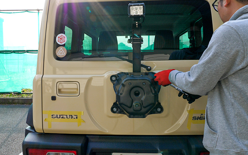 スペアタイヤの取り外しが面倒になりますが、ライトをしっかりと固定できるようになりました。