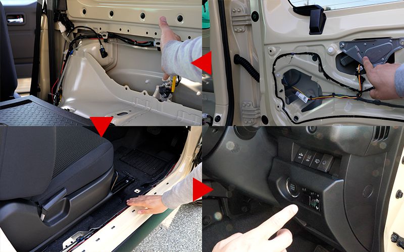 運転席付近まで配線を通していきます。ラゲッジから運転席までのルートに関してはこちらの記事をご覧ください。