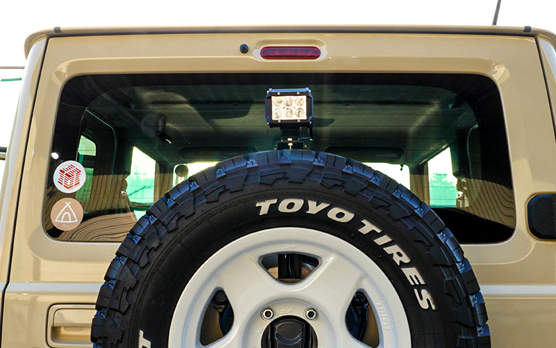 今回購入したのは車両背面のスペアタイヤの台座部分に取り付けて、スペアタイヤの上から照らす感じのバックライトです。