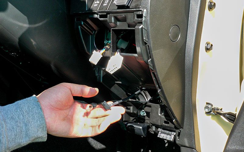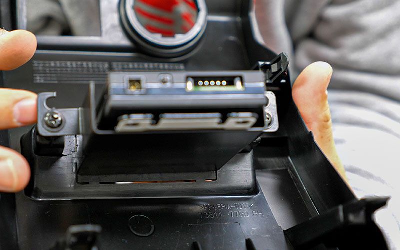 ナビ裏からACC電源、常時バッテリー電源、アース線をETC車載器に繋いだらパネルを戻して終わりです。